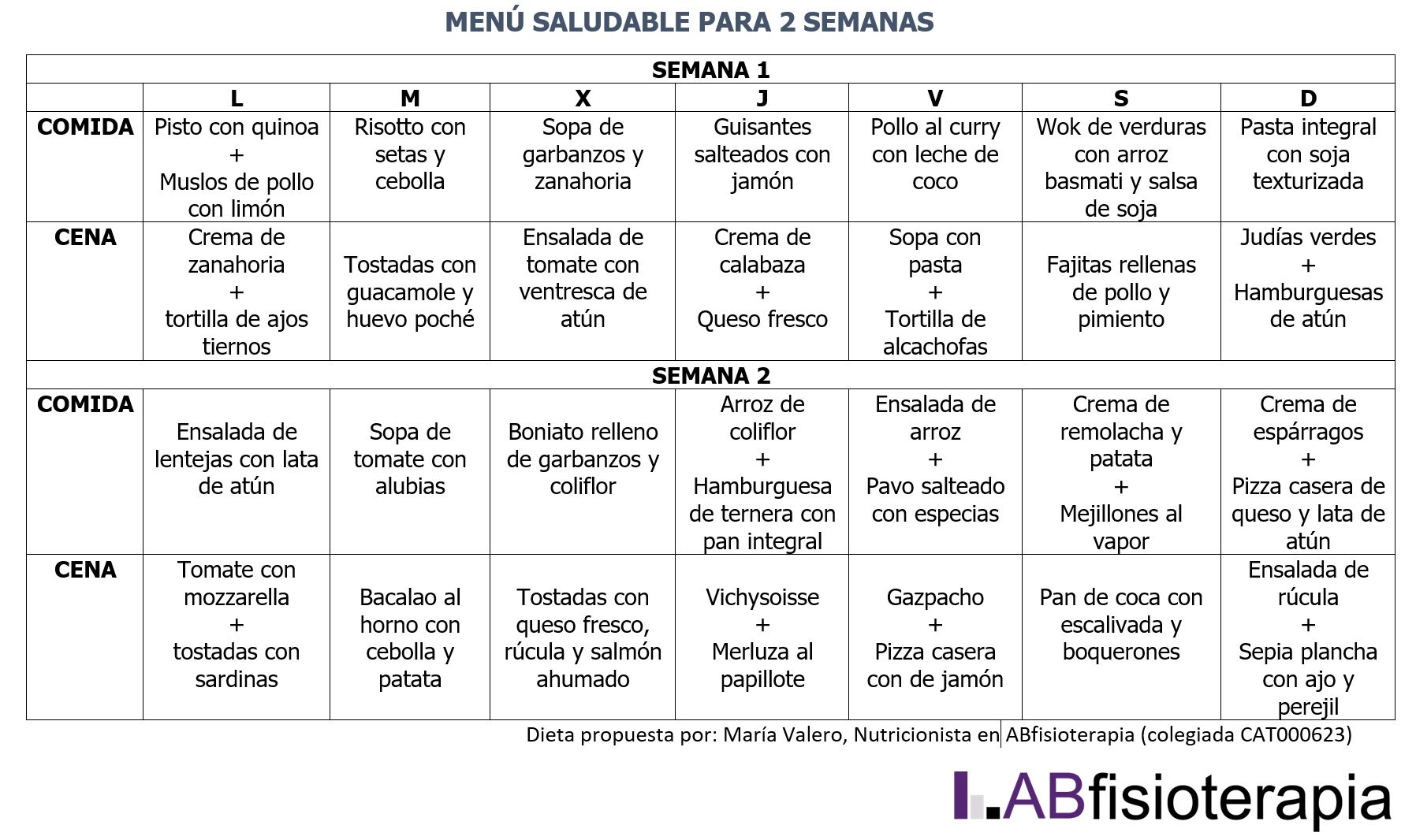 Menu saludable Coronavirus – ABfisioterapia